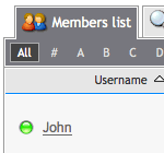 Die Mitgliederliste sortiert alle Mitglieder der Seite nach einem bestimmten Kriterium. Du kannst die Sortierung über die Tabellenköpfe verändern oder nach dem Anfangsbuchstaben filtern. Unterhalb der Auflistung kannst du auf die nächste Seite navigieren.